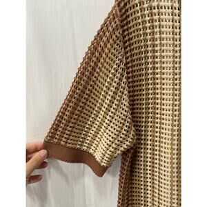 Massive Luxury Brown Beige Cotton Open Knit Stripe Casual Button Down Shirt M