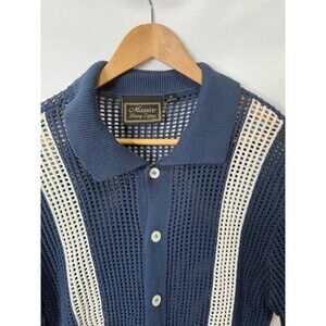Massive Luxury Edition Crochet Knit Polo Shirt Small Open Weave Cotton Beach