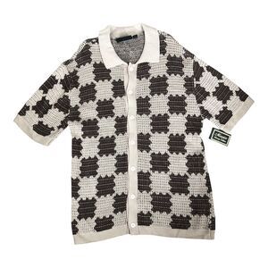 Massive Luxury Edition NWT Brown & Beige Knit Modern Button Up Casual Shirt Sz L