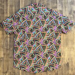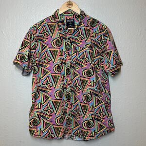 Massive Men’s Vaperwave 90s Patterned Cotton Button Front Short Sleeve Size L