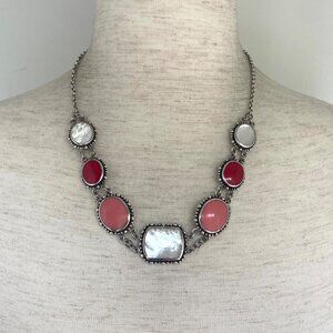 Where to begin describing this necklace… All the pendants, 7 in total, were made by Navajo artist Dan Dodson & are all signed and stamped. All materials used in the creation of this necklace are either all natural gemstones ( from lapis to turquoise to carnelian & beyond!) sterling silver, or ceramic glass (bright red trade beads). It is absolutely gorgeous, photos cannot do it justice. Yes, it is heavy! Something best saved for special occasions or events as it is a bit much for all day wear.