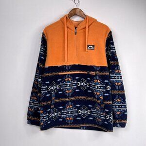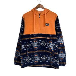 Massive Outdoor Mens Orange Blue Aztec Print Fleece Popover Hoodie Jacket Medium