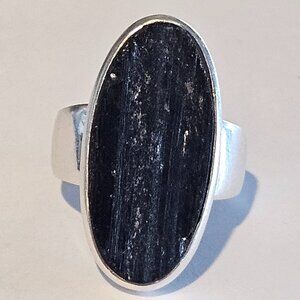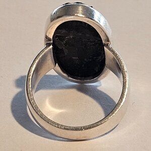 Massive Oval Raw Black Tourmaline Sterling Silver Cocktail Statement Ring Size 8