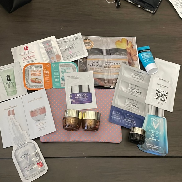 Lots of brand new samples!! Check out the pictures and I’m including a makeup bag (brand new as well)
