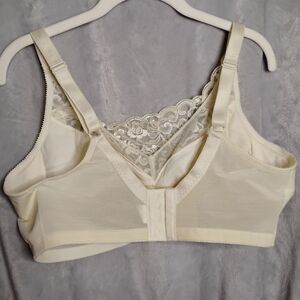 Jodee Surgical Bra. Size 42D. Ivory color. New but was in storage for years. It is a mastectomy bra so it has pockets for pads/silicone breast forms. No rips or tears. Smoke free/Dog friendly home. Any money made from the sale of this bra will go towards yarn, crochet hooks, adult coloring books, books, journals and other craft supplies for patients going through infusions (FYI the patients were offered the bras for a year but no one wanted them so I am trying to find a way to still benefit the patients).