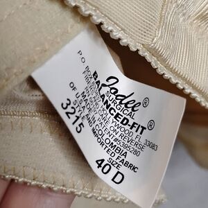 Jodee Surgical Bra. Size 40D. Yellowy tan color. New but was in storage for years. It is a mastectomy bra so it has pockets for pads/silicone breast forms. No rips or tears. Smoke free/Dog friendly home. Any money made from the sale of this bra will go towards yarn, crochet hooks, adult coloring books, books, journals and other craft supplies for patients going through infusions (FYI the patients were offered the bras for a year but no one wanted them so I am trying to find a way to still benefit the patients).