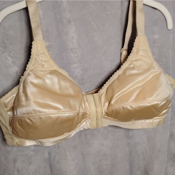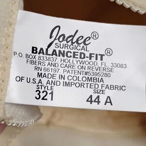 Jodee Surgical Bra. Size 44A. Yellowy ivory tan color. New but was in storage for years. It is a mastectomy bra so it has pockets for pads/silicone breast forms. No rips or tears. Smoke free/Dog friendly home. Any money made from the sale of this bra will go towards yarn, crochet hooks, adult coloring books, books, journals and other craft supplies for patients going through infusions (FYI the patients were offered the bras for a year but no one wanted them so I am trying to find a way to still benefit the patients).