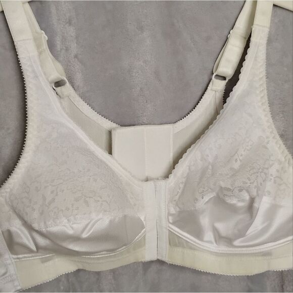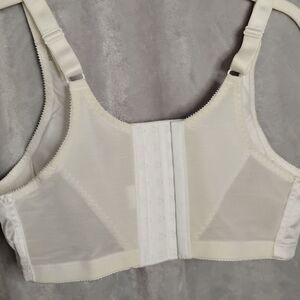 Jodee Surgical Bra. Size 38A. White color. New but was in storage for years. It is a mastectomy bra so it has pockets for pads/silicone breast forms. No rips or tears. Smoke free/Dog friendly home. Any money made from the sale of this bra will go towards yarn, crochet hooks, adult coloring books, books, journals and other craft supplies for patients going through infusions (FYI the patients were offered the bras for a year but no one wanted them so I am trying to find a way to still benefit the patients).