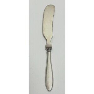 This master butter knife measures 7 7/8 inches long and features a classic utilitarian design typical of the late Victorian era (1880-1900). The knife is likely silver plated, though it has no visible makers marks. Its simple elegance and practical size make it ideal for serving butter or spreads at formal or casual gatherings. This vintage piece complements antique flatware collections or can add historical charm to your table setting. Surface scratches and edge wear consistent with age adding to vintage charm. A great find for collectors or lovers of Victorian flatware.