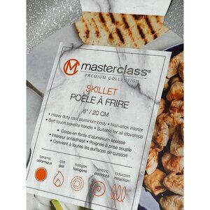 Set of Brand new with tags Masterclass cookware. 3 piece set which includes an 11" skillet, 9.5" skillet, 8" skillet, All three skillets have a pour spouts.