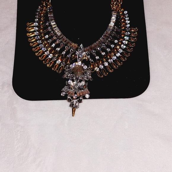 Bedazzled Rhinestone necklace with gold embroidery costume jewelry