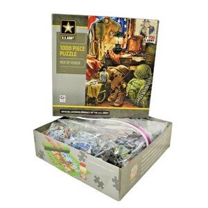 A 1000-piece jigsaw puzzle featuring the brave Men of Honor of the US Army. It's a complete set, made by MasterPieces, perfect for puzzle enthusiasts and military history buffs alike.