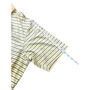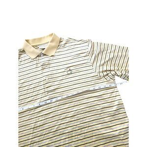 Masters Augusta National Men’s Polo Shirt size large yellow green striped cotton. Good pre-owned condition no stains no holes measurements provided in pictures are approximate