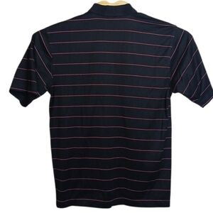 Stylish black polo shirt with red penstripes, perfect for any occasion. Clubhouse collection Masters chest embroidered logo, short sleeve, excellent pre-owned condition, golf polo
