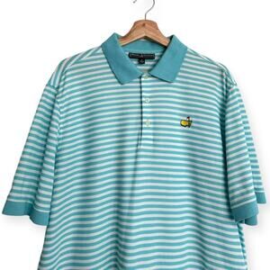 Masters Collection Pima Cotton Teal and White Striped Embroidered Polo Men's L
