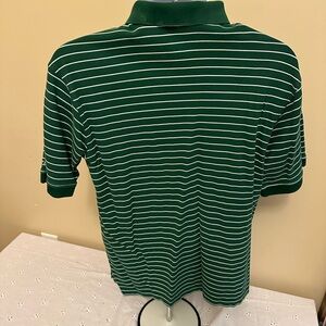 Elevate your golf game with this Masters Collection polo shirt, featuring a classic green and white striped design. Made from 100% Pima cotton, this shirt is sure to keep you comfortable on the course, whether you're walking, playing a round of golf, or driving. The pullover closure and collared neckline add a touch of sophistication, while the medium fabric wash ensures that the shirt will stay looking great wash after wash.