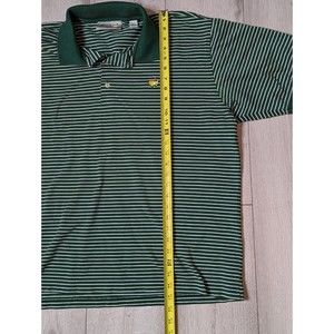 Masters Collection Shirt Green Stripe Short Sleeve 60's Two Ply Polo Mens XL. There is a light stain on the right side of the chest.