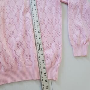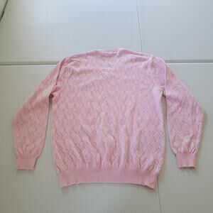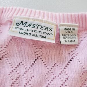 Masters Collection Sweater Womens Medium Pink V Neck Argyle Cotton Made USA Golf