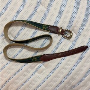 This Masters belt features a unique combination of green and brown leather, showcasing a rustic and weathered appearance. The durable leather material is complemented by a sturdy metal buckle, making it both stylish and functional.
