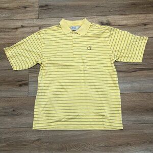 Masters Logo Striped Polo Shirt MEDIUM Yellow Navy Augusta National Golf Shop
