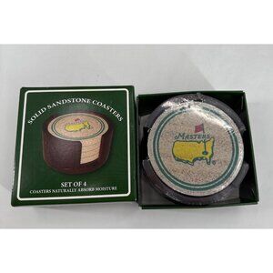 This set of solid sandstone coasters is both functional and stylish. Featuring the iconic Masters logo, these coasters naturally absorb moisture, protecting your surfaces. Comes with a holder for easy storage.