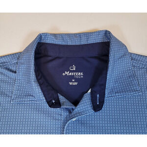Masters Tech Blue Stretch Micro Check Polo Shirt Embroidered Logo Medium D7