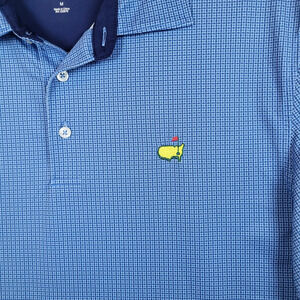 Masters Tech Blue Stretch Micro Check Polo Shirt with Embroidered Chest Logo in Men's size Medium