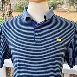 Excellent condition Master’s Clubhouse Collection Knit Polo Shirt. Size XL. Made in Italy. Blue striped. No stains or damage. From smoke free pet free home. Measurements laying flat: