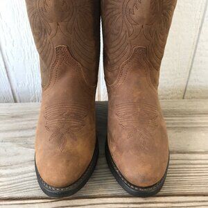 Masterson Distressed Womens Tan Nubuck Leather Cowboy Western Boots 6.5 M RB7440