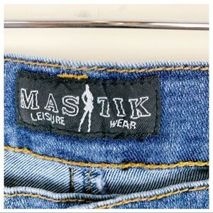 Mastik Leisure Wear Boot Cut Jeans w/Faux Leather Accent Sz 29 EUC. Great stretchy jean for a flattering fit. Unique and boho or country vibes. Please see photos for additional details. Mid-rise.