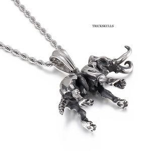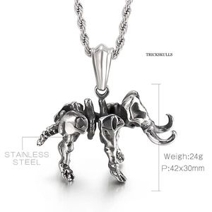 Mastodon Elephant Ghost Skeleton Skull 316 Stainless Steel Pendant 60cm Chain