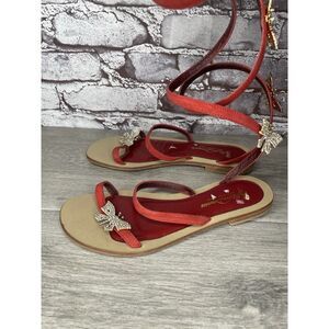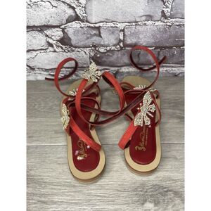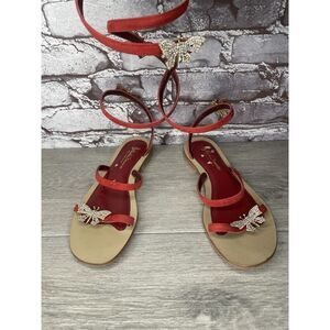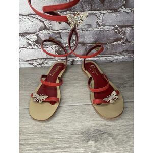 Selling Mastro Domenico Red Leather Butterfly Rhinestone Wrap Around Handmade Sandals Women Sz 38EU/7.5M US