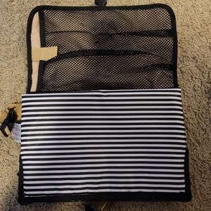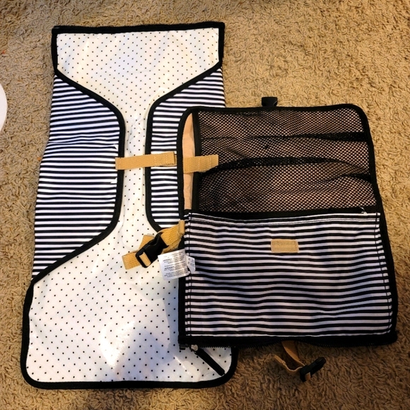 Portable diaper changing station with changing pad never used. Storage for diapers diapers wipes. Clips to anything