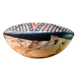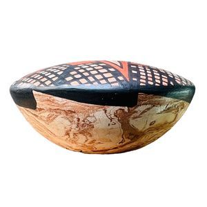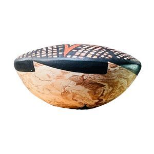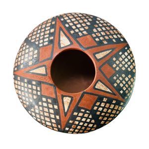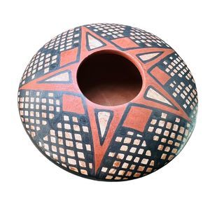 Mata Ortiz Mexico Seed Pot Olla SIGNED Miniature Handmade Black Squares Red Star