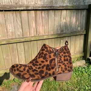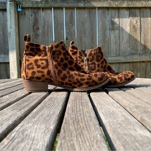 Malta leopard booties size 7. Preowned great condition. Zipper detailing on the side. Heel is one inch. Ships in 1-4 days thanks!
