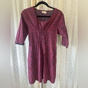 Mata Traders 100% Cotton Breathable Geometric Aztec Smocked Pull Over Dress M
