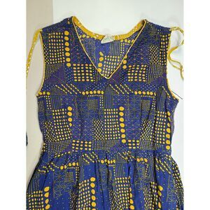 Mata Traders Blue Yellow Geometric Print Tassel Tie Tiered Summer Dress L
