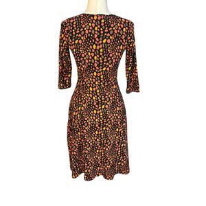 The Mata Traders Callie Faux Wrap Dress in size XS features a stylish V-neckline and 3/4 sleeves, making it a versatile piece for various occasions. The polka dot pattern in a multicolor palette adds a playful touch, while the spandex and cotton material ensures a comfortable fit. With a pullover closure and midi length, this dress is both easy to wear and flattering, suitable for parties, casual outings, work, or business settings. Additionally, the stretch fabric and pockets add practicality to this A-line and fit & flare style dress, perfect for the winter, fall, and spring seasons.