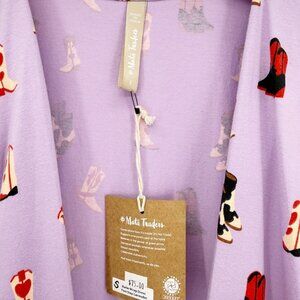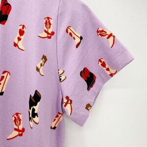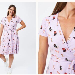 This wrap dress features a swingy skirt, fully adjustable tie, and super-soft organic cotton jersey where cowboy boots take center stage. Combine a pleasing color palette and a kicky (see what we did there?) print, and you've got a go-to piece that toes the line between cute and chic.