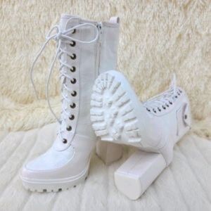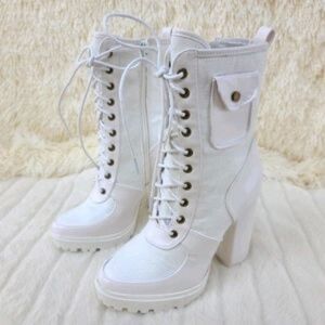 White 4' Chunky Heel Booties