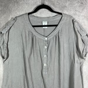 Match Point Blouse Womens Medium Gray Linen Pre-Shrunk Cap Sleeve Tab Shoulder Lightweight Vacation Beach Lagenlook