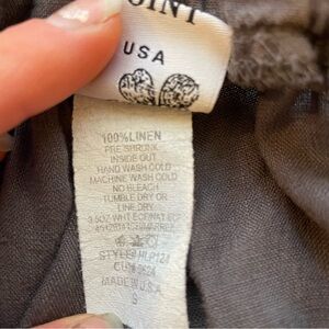 Stylish gray linen wide-leg capris with ruffle hem. Perfect for casual wear.