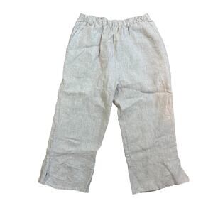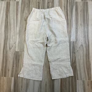 Match Point Pants Small Tan Pull On Cropped Wide Leg Split Hem Lagenlook Coastal