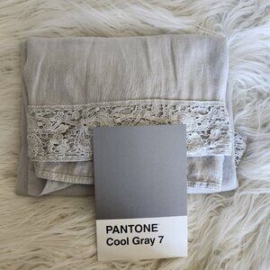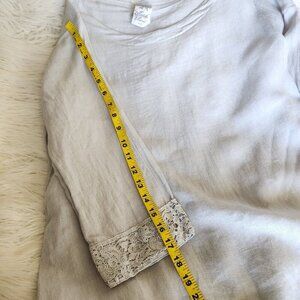 Match Point Top Womens S Linen Tunic Laggenlook Minimalist Lace Trim Boxy Gray