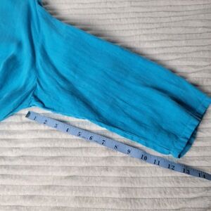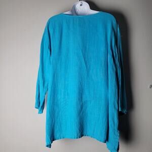 Match Point USA Boho 100% Linen Top XL Turquoise 3/4 Sleeve Tunic Lagenlook Boho