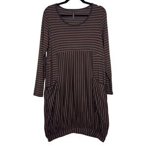 Match Point USA Size Small Brown Black Stripe Bubble Dress Pockets Jersey Lagenlook