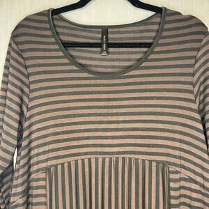 Match Point USA Size Small Brown Black Stripe Bubble Dress Pockets Lagenlook