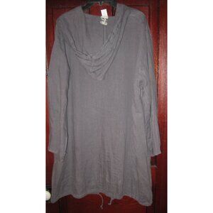 Match Point USA XL 100% Linen Duster Jacket Coat Tunic Hood Button Pockets Gray