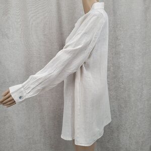 Match Point Linen Off White Bone Button Up Blouse Shirt