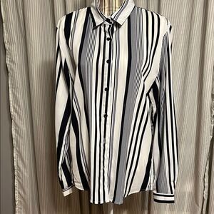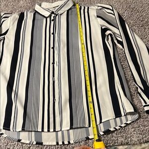 Stylish black and white striped shirt. Features a classic button-up design. Perfect for any occasion.